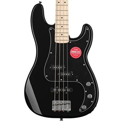 Squier by Fender Affinity Series Electric Precision Bass Guitar, Maple Fingerboard, Black Pickguard, Black, Comes with Free Virtual Lessons