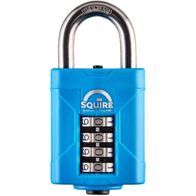 General description The Squire CP40S Heavy-Duty Rustproof Marine Combi Padlock is designed for outdoor use, featuring a hardened stainless steel, rust-proof shackle and a durable die-cast alloy lock body. It offers excellent corrosion resistance and is suitable for securing boats, sheds, lockers, toolboxes, and storage areas. The padlock includes a 4-wheel combination lock with over 10,000 possible codes, which can be easily set and changed. Technical specifications Body Width: 38mm Body Thickness: 22mm Shackle Diameter: 6mm Vertical Shackle Clearance: 19mm Horizontal Shackle Clearance: 17mm Key Type: Combination Number of Combination Wheels: 4 Installation Easy to set and change the combination code. Usage Use the combination wheels to set your preferred code. Secure the shackle through the hasp or latch. Ensure the code is scrambled when not in use for security. Other information Endorsed by CRIMESTOPPERS for security.
