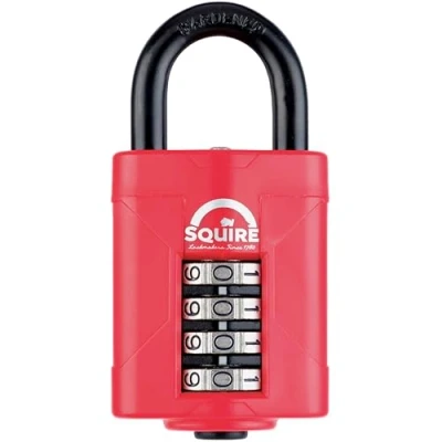 Squire Heavy Duty Padlock (CP50RED) Toughest Steel Shackle 4 Wheel 50mm Wide Combination (Red) Alloy for Corrosion Resistance Weatherproof Lock Home, School & Garage