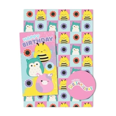 Make every gift extra special with the Squishmallows 1 Sheet, 1 Tag, 1 Card Pack! This adorable set includes a vibrant sheet of wrapping paper, a matching gift tag, and a cheerful birthday card, all featuring your favourite Squishmallows characters. Perfect for Squishmallows fans of all ages, this set adds a fun and cuddly touch to any present. Whether you're celebrating a birthday or just spreading some joy, this all-in-one pack makes wrapping gifts easy and extra cute!