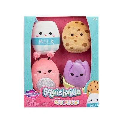 PERFECT PAIRS SQUAD - Your best friends Jackie, Andreina, Melly, and Neoona are included. DYNAMIC DUOS - Butterflies love flowers and milk is always better with cookies; these two dynamic duos are eager to join your Squad. EXCLUSIVE SIZE - Only Squishville plush are offered in the adorable 2-inch size. BUILD YOUR WORLD - Build out the World of Squishville with 2-inch Squishmallows, playsets, Play and Displays, and more. COLLECT MORE - Collect this set and all other exciting squads of Squishville., Manufacturer: Jazwares