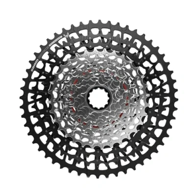 From its massive 520% gear range, the 52 tooth cog steps down with improved gear progression with 38 and 44 tooth cogs in the low end (compared to the Eagle drivetrain 10-52-tooth cassette) 55mm chainline compatibility for more moderate chain angle, longer wear and greater precision Featuring a clearly marked Setup Cog, install is both simple and fool-proof Utilizes a Pindome design for gears 1-8 and a single piece mini-cluster for gears 9-12 Nickel plating delivers top-tier durability as well as a quiet shift experience
