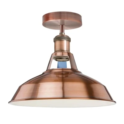 SRM, Vintage Retro Industrial Semi Flush Mount Ceiling Light LED Lamp Fixture, Kitchen Ceiling, Metal Large Rustic Shade Pendant Lampshade Fitting for Bedroom, Farmhouse (Copper 2)
