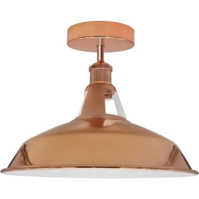 SRM, Vintage Retro Industrial Semi Flush Mount Ceiling Light LED Lamp Fixture, Kitchen Ceiling, Metal Large Rustic Shade Pendant Lampshade Fitting for Bedroom, Farmhouse (Rose Gold 2)