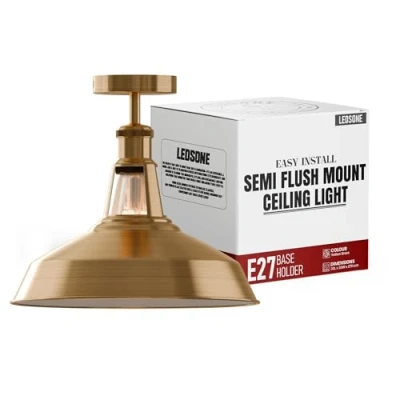 SRM, Vintage Retro Industrial Semi Flush Mount Ceiling Light LED Lamp Fixture, Kitchen Ceiling, Metal Large Rustic Shade Pendant Lampshade Fitting for Farmhouse