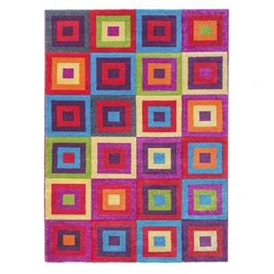 SrS Rugs® Candy Rainbow Rug for Living Room, Lounge, Hallway, Kids Playroom, Nursery Boys & Girls Hippy Pride Brighten Your Home (Squares, 200cm x 300cm)