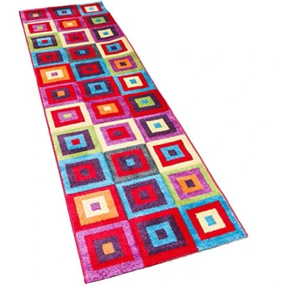 SrS Rugs® Candy Rainbow Rug Runner for Living Room, Lounge, Hallway, Kids Playroom, Nursery Boys & Girls Hippy Pride Brighten Your Home (Squares, 67cm x 300cm)