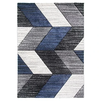SrS Rugs® Impulse Area Rug for Living Room, Bedroom, Hallway Runner Abstract Geometric Design Provides Home with Comfort and Warmth (Navy Blue Chevron, 80cm x 150cm)