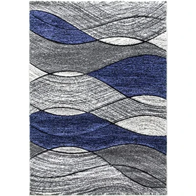 SrS Rugs® Impulse Area Rug for Living Room, Bedroom, Hallway Runner Abstract Geometric Design Provides Home with Comfort and Warmth (Navy Blue Waves, 80cm x 150cm)