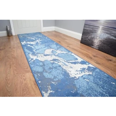 SrS Rugs® Long Carpet Runner Non Slip Rubber Back Mat for Kitchen, Hallway, Stairs, Bedroom. Smooth Soft Durable Pile. 67cm Wide (Blue Splash Marble, Length: 3' (91cm))