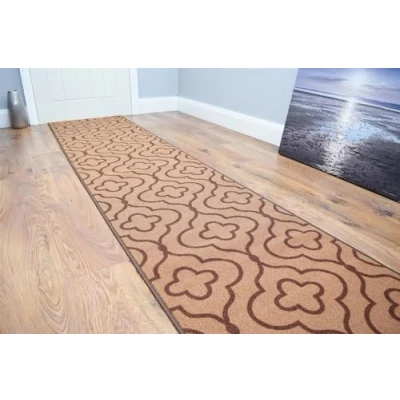SrS Rugs® Long Carpet Runner Non Slip Rubber Back Mat for Kitchen, Hallway, Stairs, Bedroom. Smooth Soft Durable Pile. 67cm Wide (Brown Trellis Club, Length: 4' (122cm))