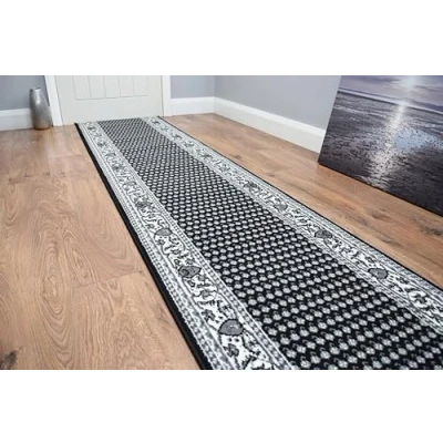 SrS Rugs® Luna Collection, Modern Long Carpet Runner Rug for Entrance Hall and Stairs. Smooth Soft 8mm Depth Pile. 70cm Wide (Border Traditional Black, Length: 14' (427cm))