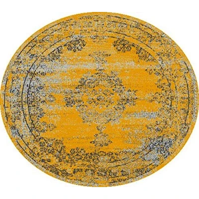 SrS Rugs® Round Circle Large Small Living Room Mat Rug 13 Designs 3 Sizes (Distressed Gold, 100cm Cirlce)