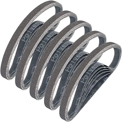 Pack contains 30Pcs 13X457mm sanding belts, silicon carbide grain | Closed coat | Heavy duty Y-weight polyester cloth backing Wet or dry applications | Silicon Carbide sander belts ideal for knife sharpening, metal working, glass, stone, granite, cement, composites, plastics and light metal finishing Precision engineered bi-directional tape joint, diagonal lap splice eliminates splice bump, sanding belts interface is firm and not easy to break under pressure Anti-clogging stearate to reduce heat and buildup | Resin over resin bonding for long belt life, quality craft allow the sand grit even, not easy to fall down Available in a wide range of common grit: 60/120/240/400/600/800 grits, you can choose freely the abrasive belt with the coarse grits or fine grit sanding belts according to your needs