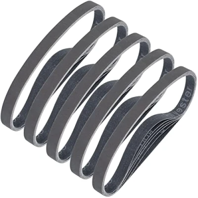Pack contains 30Pcs 13X457mm sanding belts, silicon carbide grain | Closed coat | Heavy duty Y-weight polyester cloth backing Wet or dry applications | Silicon Carbide sander belts ideal for knife sharpening, metal working, glass, stone, granite, cement, composites, plastics and light metal finishing Precision engineered bi-directional tape joint, diagonal lap splice eliminates splice bump, sanding belts interface is firm and not easy to break under pressure Anti-clogging stearate to reduce heat and buildup | Resin over resin bonding for long belt life, quality craft allow the sand grit even, not easy to fall down Available in a wide range of common grit: 60/120/240/400/600/800 grits, you can choose freely the abrasive belt with the coarse grits or fine grit sanding belts according to your needs