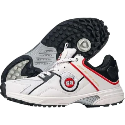LIGHT WEIGHT OUTSOLE: SS Gutsy Cricket Shoes for Men feature a light-weight outsole, providing enhanced agility and easy movement during cricket matches. EXTRA COMFORT: The shoes prioritize player comfort with high-quality PU COATED PVC & MESH for the upper material, providing a combination of breathability and comfort during play. DURABILITY, SUPER STRENGTH: Crafted with PVC material for the sole and additional features like high-density collar and zibbi form, these cricket shoes ensure durability and super strength, catering to the rigorous demands of the game. PREMIUM QUALITY MATERIALS: The use of high-quality materials like PU COATED PVC, mesh, and non-wove & comfortable form for the inner material reflects a commitment to premium quality, meeting the expectations of cricket enthusiasts. COMFORTABLE LINING: The cotton baker rocker lining adds an extra layer of comfort, enhancing the overall experience for the player, especially during prolonged wear on the field.