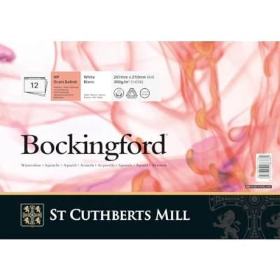St Cuthberts Mill Bockingford T4533000101DQ Watercolour Paper 300gsm Satin Pad 29.7 x 21 cm (A4) Glued on One Side 12 Sheets White