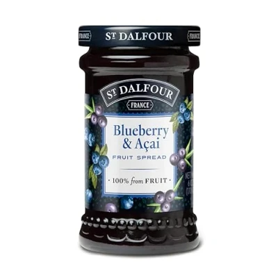 Unlock the power of nature's finest with St. Dalfour - a delicious and nutritious blend of fruits meticulously crafted to enhance your well-being; From the lush orchards of the world, we bring you a symphony of flavours packed with vitamins, antioxidants, and essential nutrients St Dalfour fruit spreads traditional family recipe combines the highest quality fruits with the juice of vineyard ripened grapes grown in the rich soil of the surrounding Nouvelle – Aquitaine region; Using grape juice helps create a healthier spread allowing the intense natural flavour and sweetness of the fruit to shine through with no added cane sugar St Dalfour only use the finest quality ingredients gently cooking carefully selected fruits in our traditional kettles; Our fruit spreads are made to preserve the delicious complexity and texture of the fruit with no artificial additives, cane sugars or preservatives All St Dalfour fruit spreads are made from ethically sourced ingredients and have no added cane sugars, corn syrups, artificial sweeteners, artificial colours, artificial flavours or artificial preservatives; All St Dalfour fruit spreads are gluten free Multipack: Each pack of St Dalfour Blueberry & Acai fruit spread contains 6 x 170g