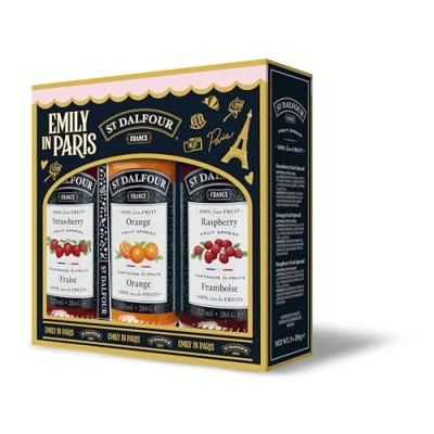 St. Dalfour Emily in Paris Gift Set 3 Gourmet Fruit Preserves with Collectible Spoon, 852g Total Premium French Jam Variety Pack, Authentic Spread Box 3x 284g Jars