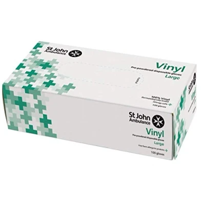 St John Ambulance Vinyl Pre Powdered Gloves Large (Box of 100)