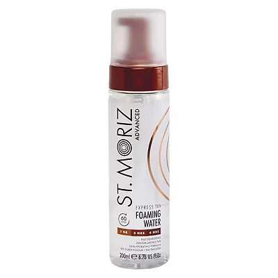 St Moriz Advanced Express Tan Clear Foaming Water Fake Mousse 1 Hour for Light Glow, 3 Hours Medium 6 Deep Glow Tanning Vegan Cruelty Free 200ml