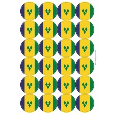 St Vincent National Flag Circular Matt Paper Stickers A4 Sheet of 24 (Each Sticker is 45mm Diameter)