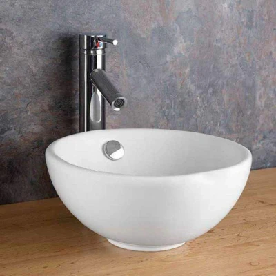 Stabia 310mm White Ceramic Round Cloakroom Basin with Overflow Clickbasin