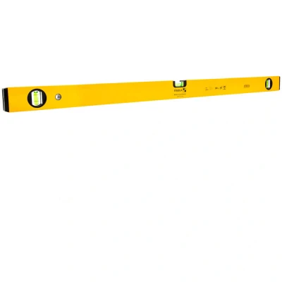 General description This is a reliable, lightweight, and highly precise spirit level designed for professional use. It features a sturdy aluminum profile with two vertical bubble vials for quick and accurate readings in any position. The level's measuring surface is coated to protect sensitive surfaces, ensuring long-term accuracy. It is suitable for various tasks such as carpentry, electrical work, tiling, and construction projects. Technical specifications Length: 90 cm (900 mm) Material: Aluminum profile Measurement accuracy in normal position: ±0.5 mm/m (0.029°) Number of measuring surfaces: 1 coated surface Number of vials: 1 horizontal, 2 vertical Compatibility and accessories Compatible with standard measuring and leveling tasks Includes a horizontal bubble vial and two vertical bubble vials for versatile use Installation Place the level on the surface to be measured, ensuring it is stable and aligned with the measurement line or surface Use the bubble vials to check for