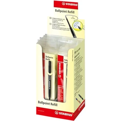 The refill is for use of the STABILO STABILO pointball The rollerball tip doesn't scratch and glides over paper. Its line width is 0.5mm. The refill is available in Red, Black, Blue and Green. Black, Blue and Green are document proof.