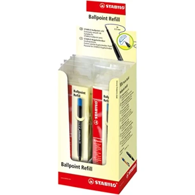Amazon The refill is for use of the STABILO STABILO pointball The rollerball tip doesn't scratch and glides over paper. Its line width is 0.5mm. The refill is available in Red, Black, Blue and Green. Black, Blue and Green are document proof.