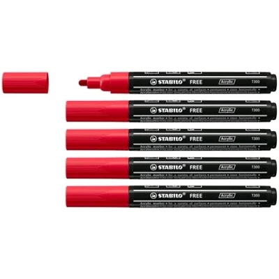 STABILO FREE Acrylic Marker ARTY T300 Round Tip 2 3mm Pack of 5 Carmine