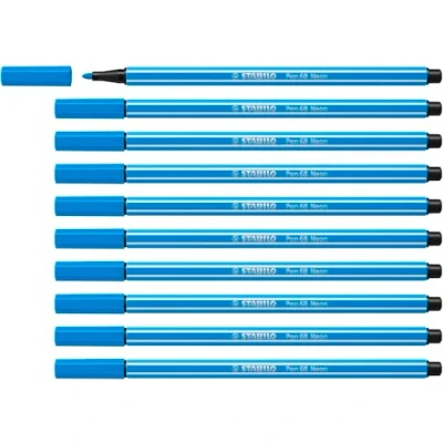 STABILO Pen 68 Premium Fibre Tip Pack of 10 Neon Blue
