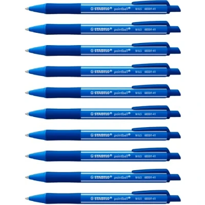 STABILO pointball colorful Ballpoint Pen Pack of 10 Ultramarine with Blue Ink