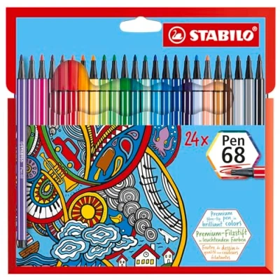 STABILO Premium Fibre Tip Pen 68 Pack of 24 Assorted Colours