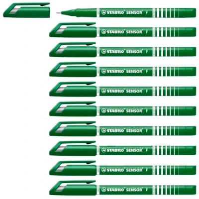 STABILO SENSOR fine Fineliner with Cushioned F Tip Pack of 10 Green
