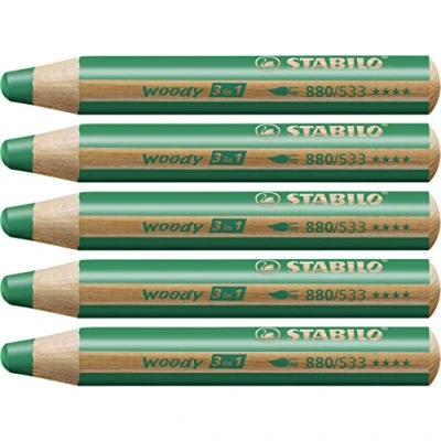 STABILO woody 3 in 1 Multi Talented Pencil Pack of 5 Dark Green