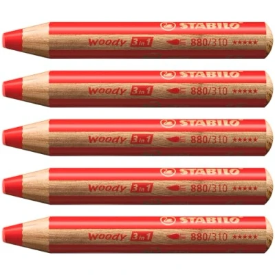 STABILO woody 3 in 1 Multi Talented Pencil Pack of 5 STABILOred