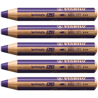 STABILO woody 3 in 1 Multi Talented Pencil Pack of 5 Violet