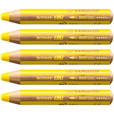 STABILO woody 3 in 1 Multi Talented Pencil Pack of 5 Yellow
