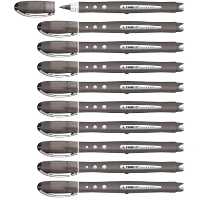 Stabilo Worker Colorful Rollerball Pen Medium 0.8mm Tip 0.5mm Line Black Ref 2019 46 [Pack of 10]