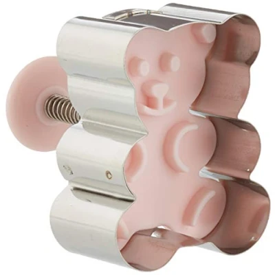 Staedter Embossing Bear Cookie Cutter with Ejector, Stainless Steel, Pink, 30 x cm