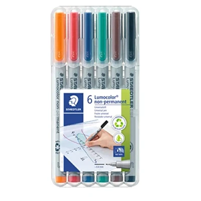 AmazonUniversal pen for use on overhead film and almost all surfaces Can be wiped off film using a damp cloth Fast drying ink with superb colour brilliancy Supplied in the handy stand-up desktop box Superfine line width approx. 0.4mm