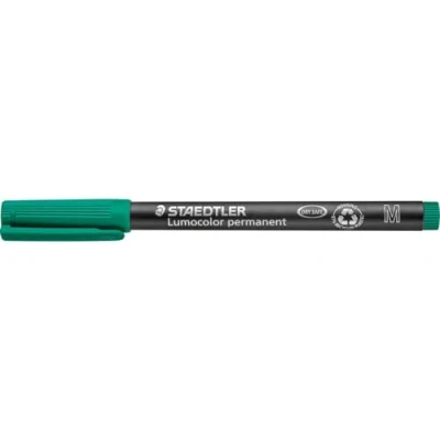 Universal pen excellent smudge-proof and waterproof on almost all surfaces, also suitable for overhead projection Dries in seconds, therefore ideal for left-handers Refillable with petrol station 487 17, permanent low odour ink Dry safe: can be left open for days without drying out Box contents: 10 Lumocolor permanent universal pens, green ink colour, line width M (1 mm)