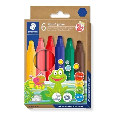 Amazon The perfect first colouring pen for toddlers aged 2+ Chunky, hexagonal barrel shape especially for little hands Stable, pressure-resistant and rounded nib Water-based, ultra-washable ink Pack of 12 Noris junior jumbo fibre-tip pens, Manufacturer: STAEDTLER