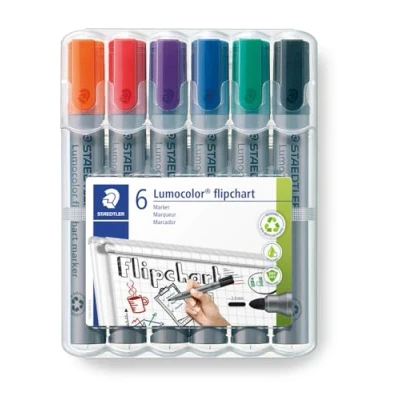 STAEDTLER 356 WP6 Lumocolor Flipchart Markers Assorted Colours Pack of 1 (6 Count )