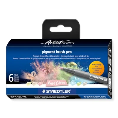 STAEDTLER 371 C6 10 Pigment Arts Brush Pen Assorted Pastel Colours (Pack of 6)