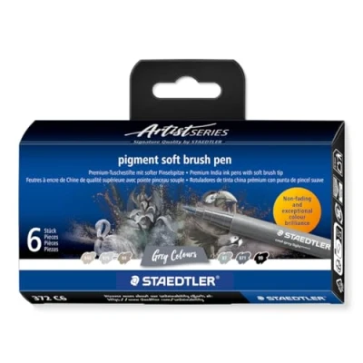 STAEDTLER 372 C6 Pigment Arts Soft Brush Pen Assorted Grey Colours (Pack of 6)