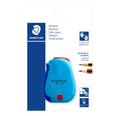 STAEDTLER 511 130 BK Sharpener Box for Lead and Coloured Pencils up to 8.2 mm, Left Right Handed Users, Double Sided Tips, One in Assorted Colours