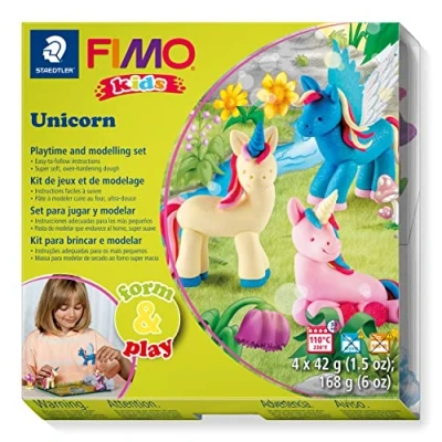 STAEDTLER 8034 19 LZ03 FIMO Kids Form&Play Playtime & Modelling Polymer Clay Set "Unicorn" (Pack of 4 Blocks, Stickers, Tools Background Scene)