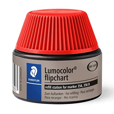 For the refilling of Lumocolor flipchart marker pens Content 30ml Red ink Simply insert marker into the refill station and it's ready in minutes Impossible to overfill
